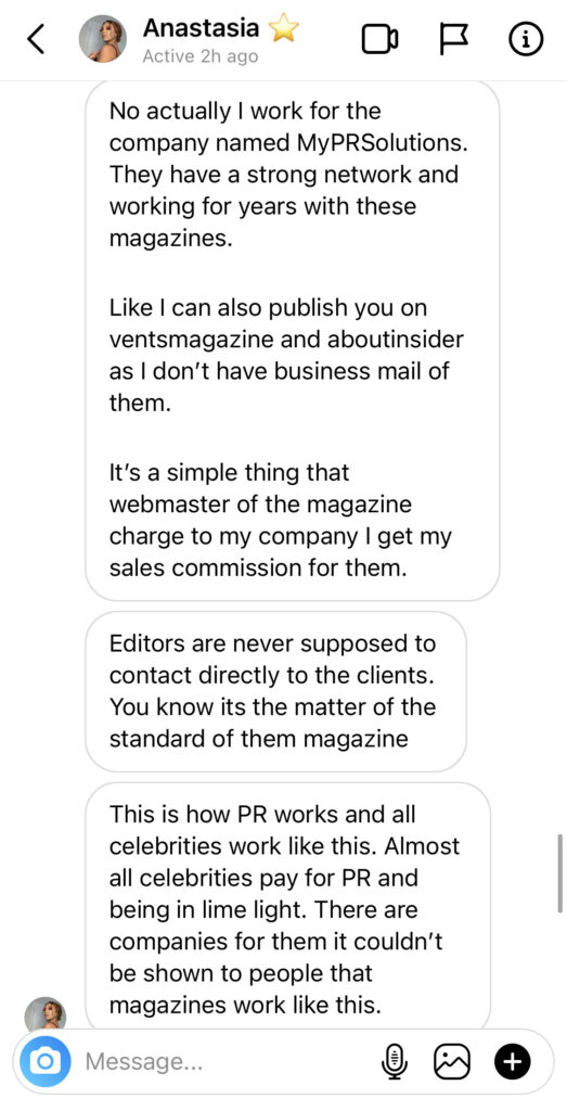 According to “Anastasia” this is just “how PR works” and “all celebrities do it.”