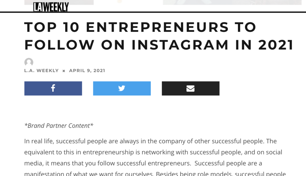 If you click the author byline of “L.A. Weekly” it actually takes you to the author page of Seminal Media. They have published hundreds of advertorial articles.